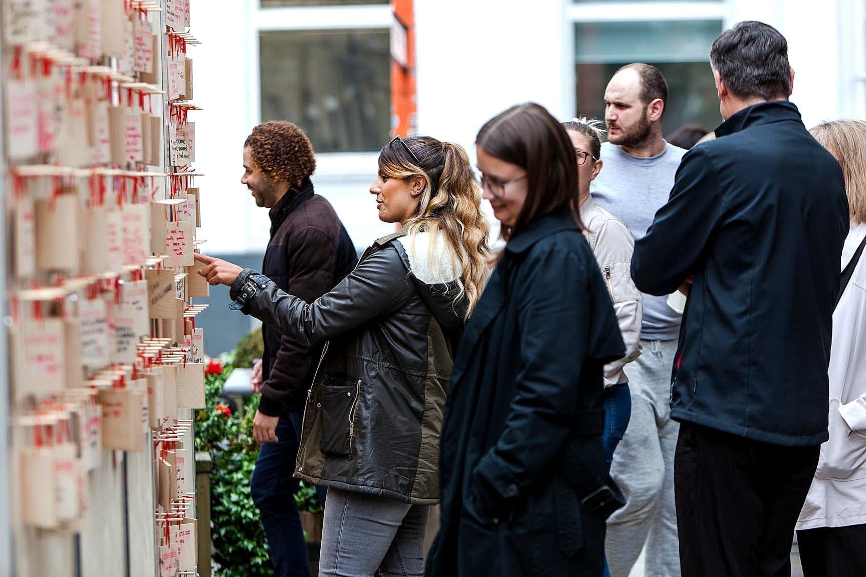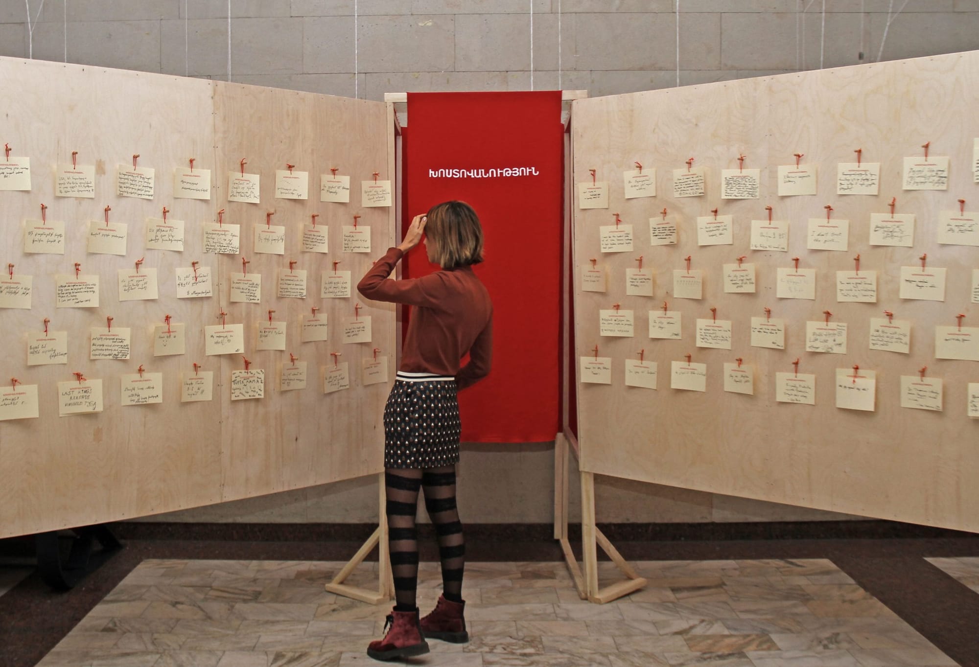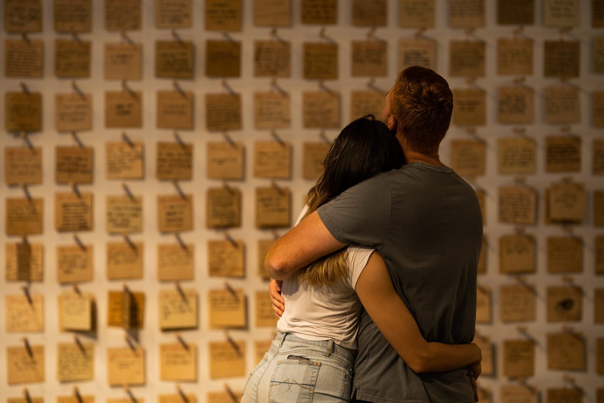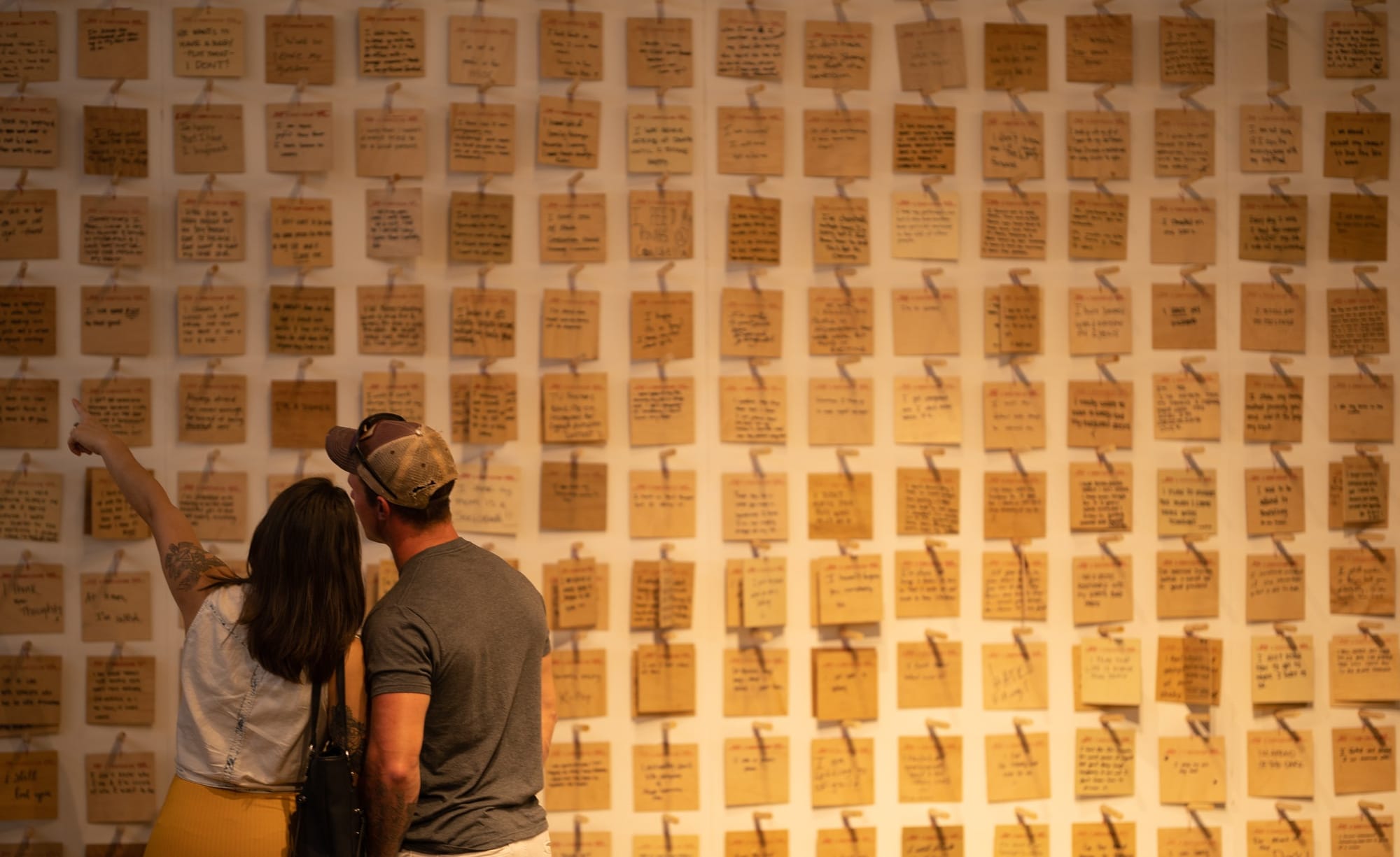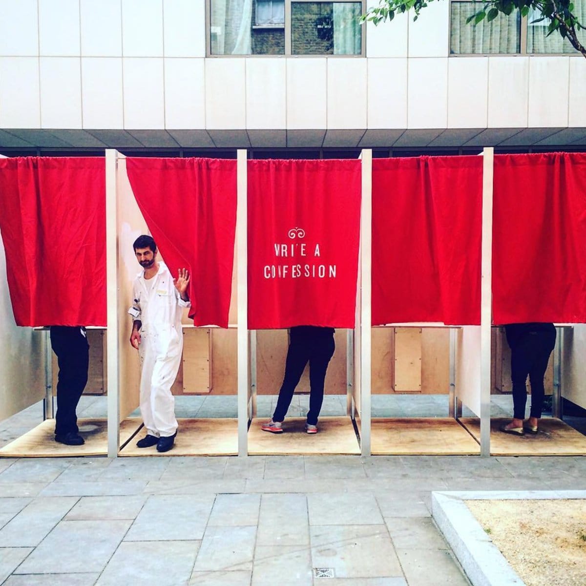 Confessions is a participatory installation that explores public rituals for catharsis and consolation. Informed by Japanese Shinto shrine prayer walls and the practices of Catholicism, Chang invited passersby to write a confession on a wooden plaque in the privacy of confession booths. She then hung the anonymous plaques on the gallery walls. The original exhibit in The Cosmopolitan in Las Vegas collected over 1,500 confessions and included an original soundtrack by Oliver Blank. The installation has since grown to over 20,000 confessions in other cities, including London, England; Athens, Greece; Yerevan, Armenia; San Diego, California; Scottsdale, Arizona; and Minsk, Belarus. Reappropriating religious rites for secular environments, the work examines the relationship between public space and emotional communion.