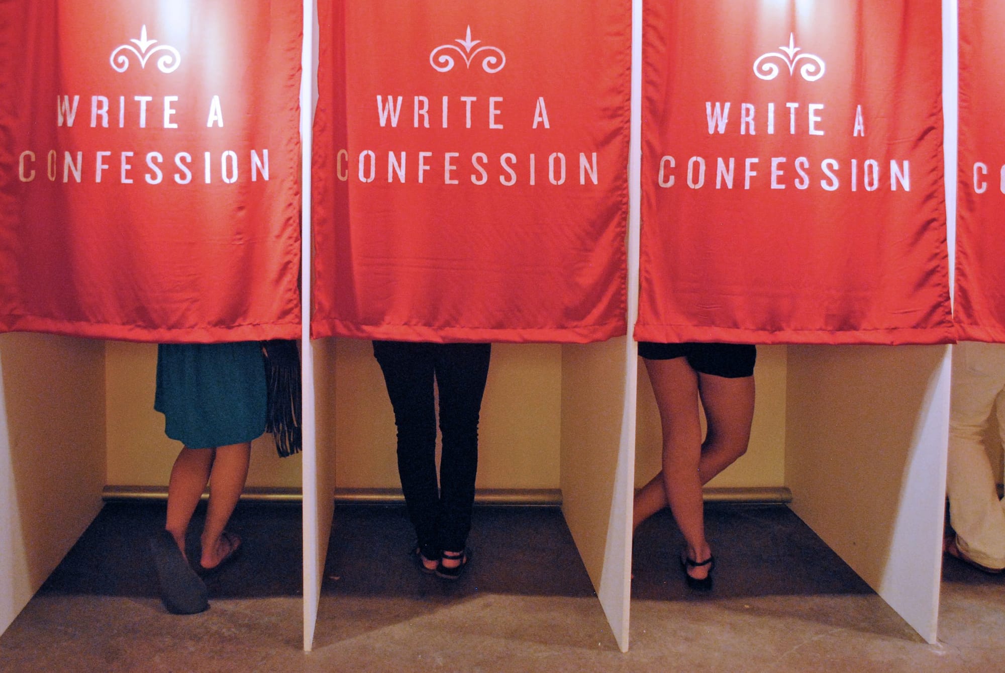 Responses ranged from the light-hearted to the profound: I still love her two girlfriends and five years later — It’s hard for me to accept my father. I feel guilty for that — Everyone thinks I quit smoking, but I didn't — I hate that all my friends are having children and turning into boring people — I sold heroin to my friend and it ruined his life — my social media is so fake — I love cats and hate my sister — Sometimes I worry that I'm the problem — I knew my marriage would end in divorce before I was married — I like it when my friends are mediocre so I can be the best — I'm a feminist but sometimes I wish I could have been a trophy wife — I'm in the military and I'm scared to die — I don't believe in an afterlife anymore, but I wish that I did.