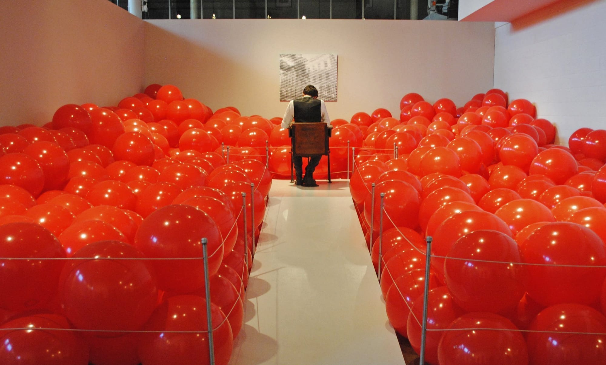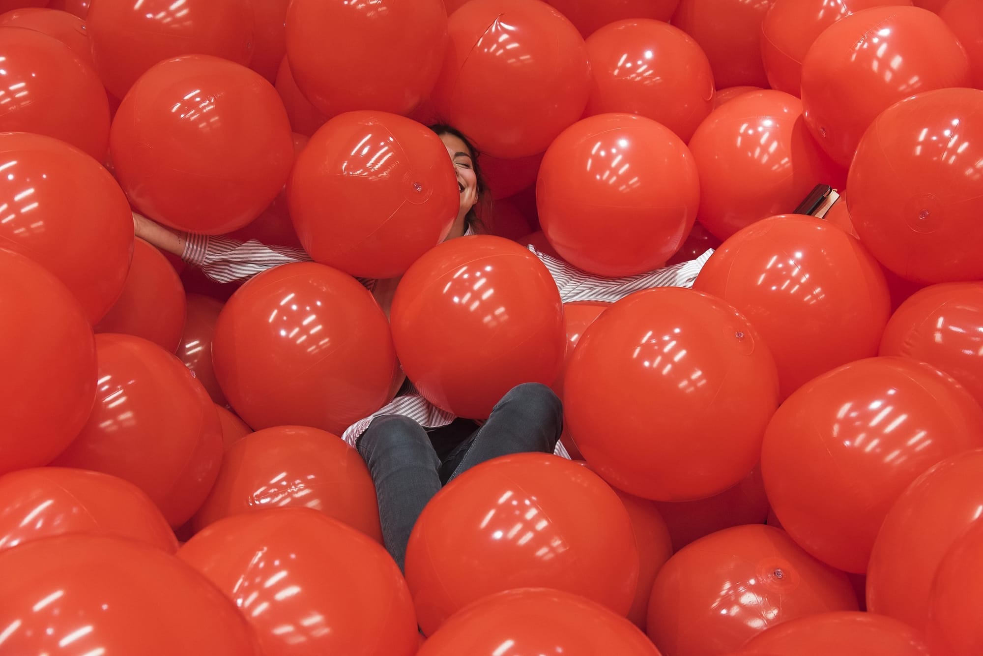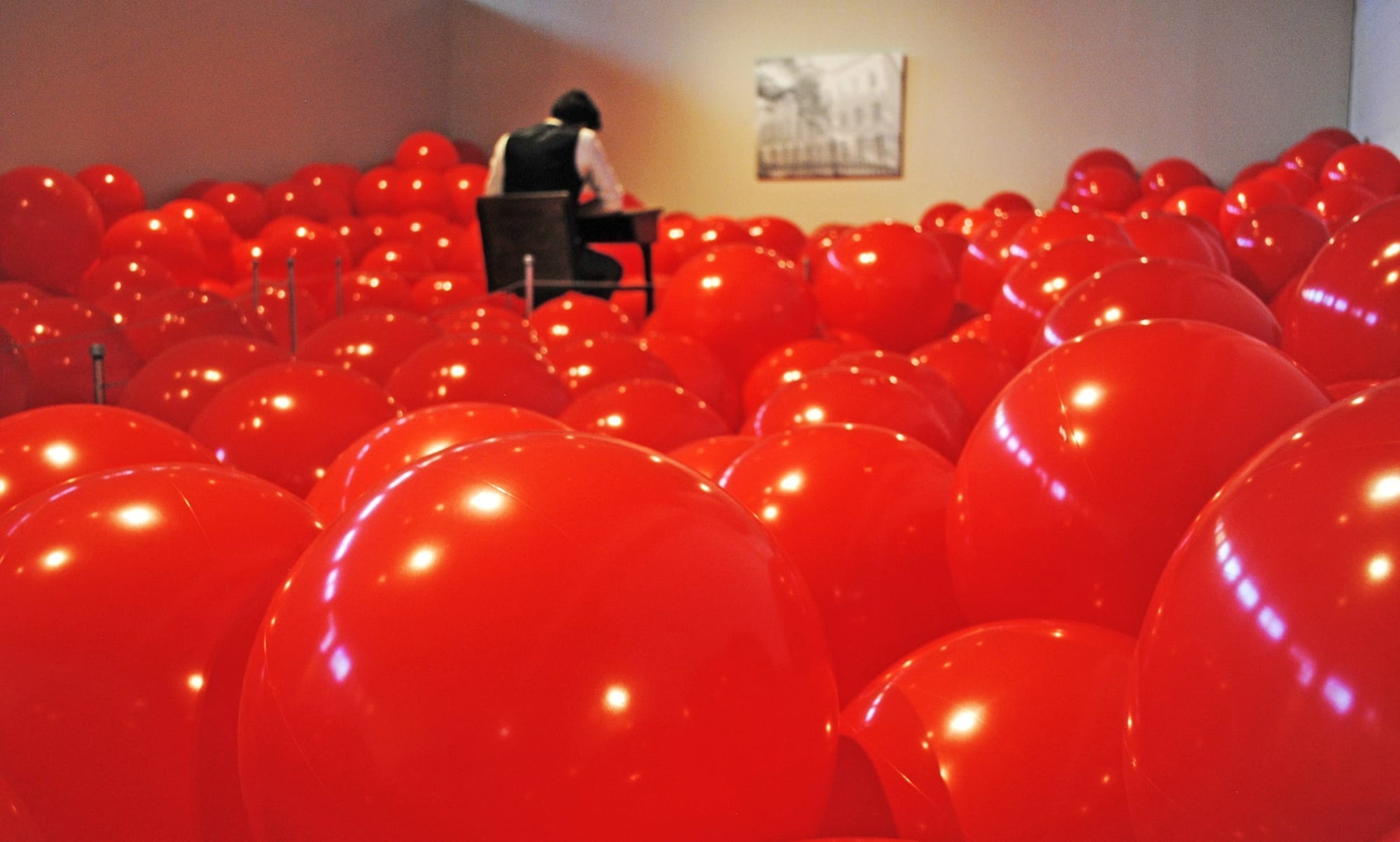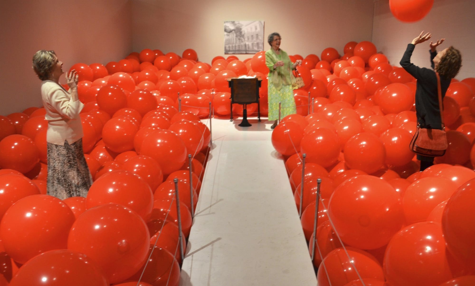 School of the Future is a participatory installation that explores what we value in an education. Visitors find themselves in a space with a school desk at one end surrounded by thousands of inflatable, red balls. A notebook on the desk asks, “What do you wish you learned in school?” A classroom reinterpreted without books, pupils, or students, the installation was informed by the first public school in Alabama, abandoned and under discussion two blocks from the gallery,