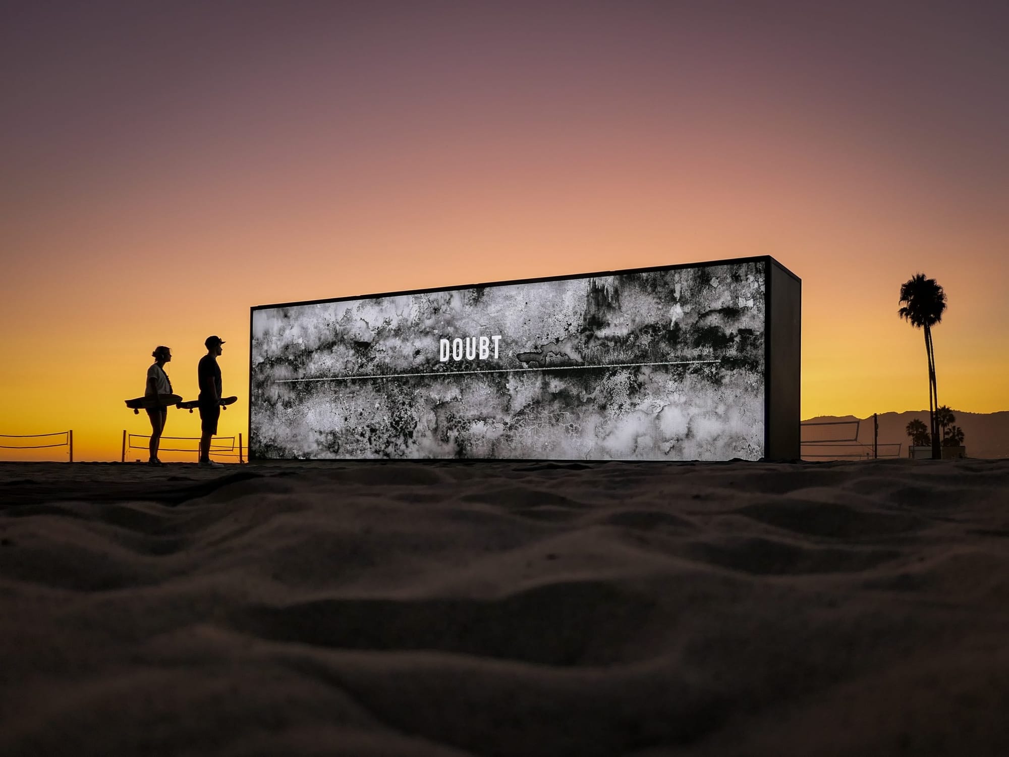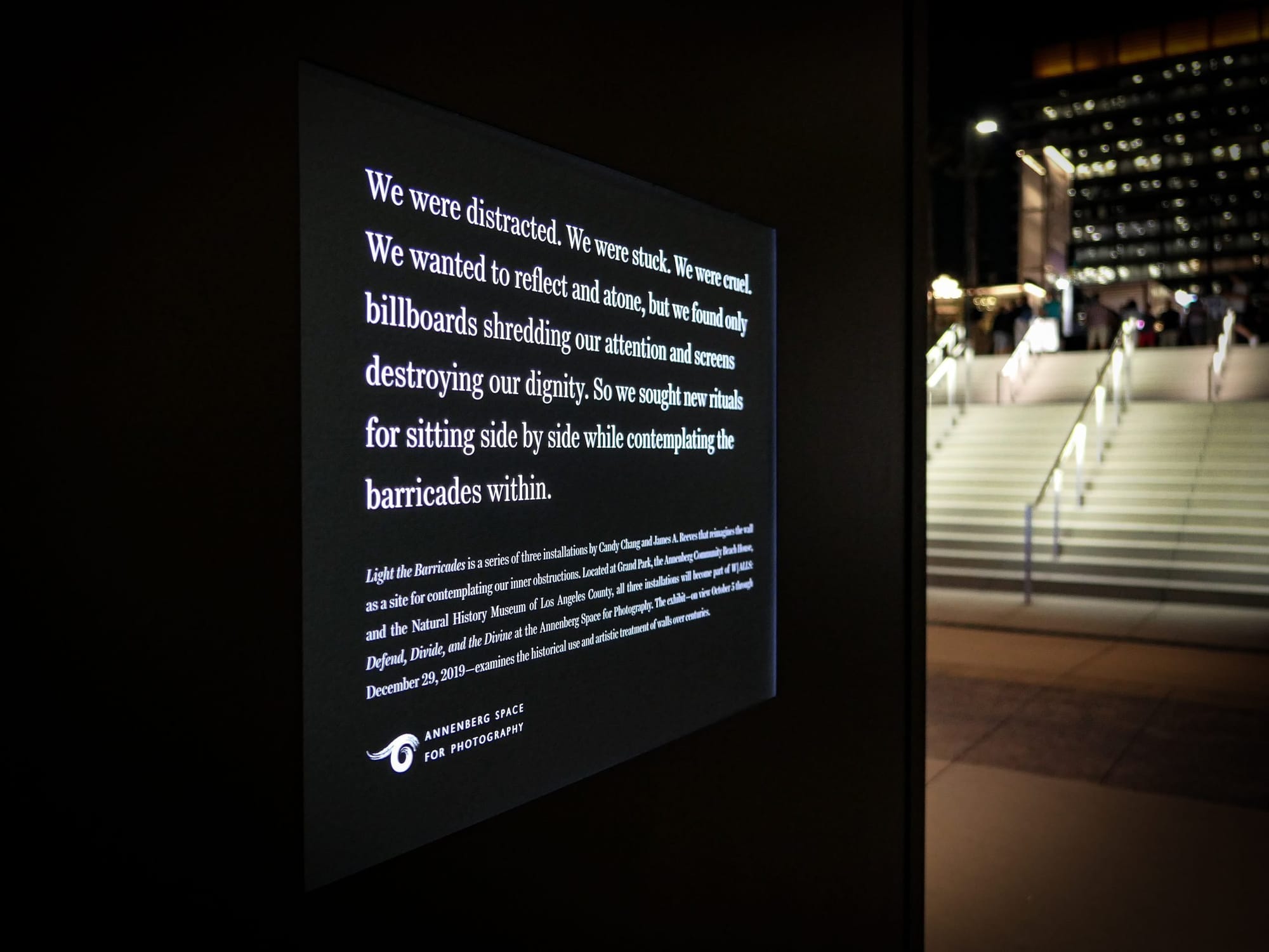 Spanning four sites across Los Angeles, the solar-powered structures appeared at Grand Park, Annenberg Community Beach House, and the Natural History Museum before convening at the Annenberg Space for Photography as part of the exhibit Walls: Defend, Divide, and the Divine. Made in collaboration with James Reeves, the project extended into the gallery and invited visitors to anonymously share their obstacles while considering the experiences of others through an ever-growing video installation of select responses. Over 3,000 handwritten reflections were collected, and Chang and Reeves's original soundtrack for the gallery appeared in an anthology of ambient music by Brooklyn label Mysteries of the Deep.